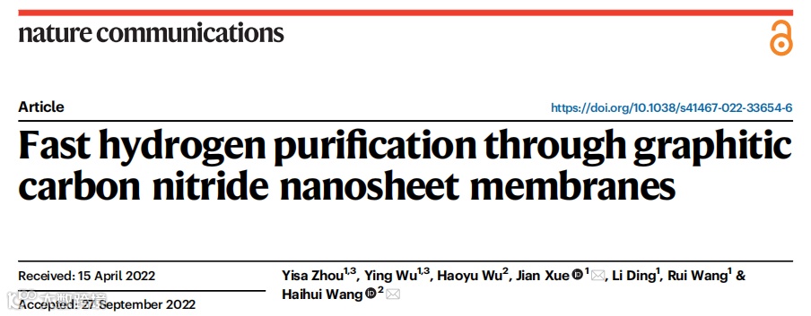 基于此,华南理工大学薛健副研究员与清华大学王海辉教授合作,在国际知名期刊Nature Communications上发表题为“Fast hydrogen purification through graphitic carbon nitride nanosheet membranes”的研究论文。