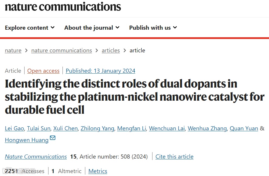 同时,以该材料为阴极催化剂组装的燃料电池表现出优异的性能和稳定性,超过了美国能源部(DOE)的技术指标,相关研究论文以“Identifying the distinct roles of dual dopants in stabilizing the platinum-nickel nanowire catalyst for durable fuel cell”为题发表在Nature Communications期刊上。