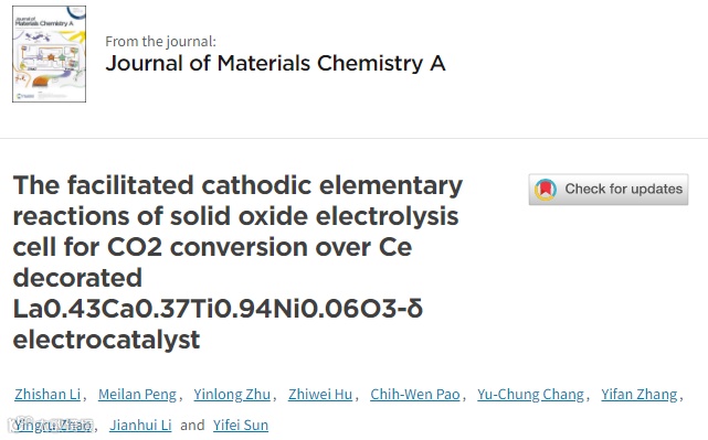 基于此,来自厦门大学的孙毅飞副教授在期刊Journal of Materials Chemistry A上发表题为“The Facilitated Cathodic Elementary Reactions of Solid Oxide Electrolysis Cell for CO2 Conversion over Ce Decorated La0.43Ca0.37Ti0.94Ni0.06O3-δ Electrocatalyst”的研究论文。