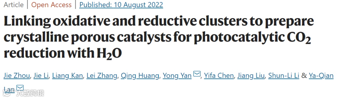 共价连接氧化和还原簇制备晶态多孔催化剂,用于光催化二氧化碳还原。