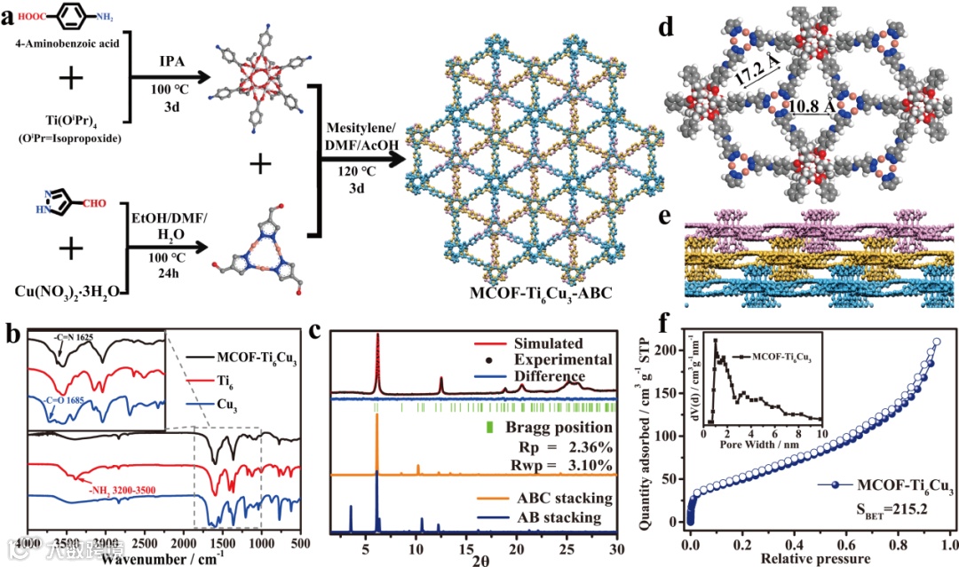 图1. MCOF-Ti6Cu3的合成及表征。