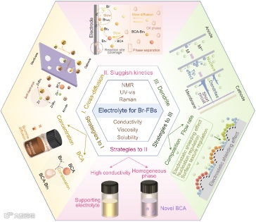 图1. 解决溴基液流电池关键问题的电解液优化策略