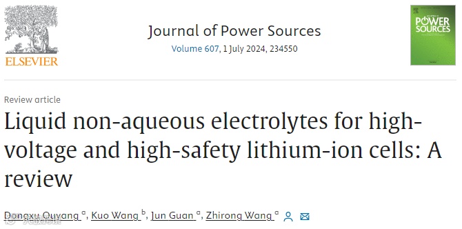 近日,来自南京工业大学的王志荣教授在国际知名期刊Journal of Power Sources上发表题为“Liquid non-aqueous electrolytes for high-voltage and high-safety lithium-ion cells: A review”的综述文章。该综述文章分三个部分(锂盐、溶剂和添加剂)分别阐述了高压高安全锂离子电池的实现,同时,还揭示了电解液实现高压高安全电池的作用机理。最后,对高压高安全电解液的现状和未来进行了总结和展望。