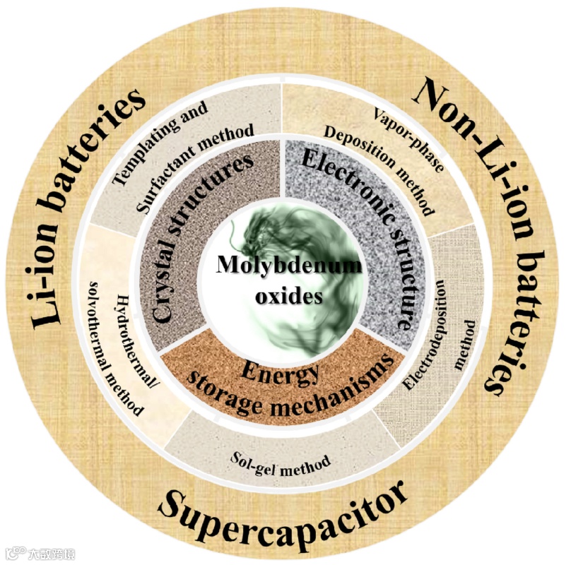 图1. 氧化钼的基本原理、合成方法和储能应用的示意图