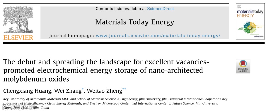 基于此,吉林大学张伟教授和郑伟涛教授在国际期刊Materials Today Energy上发表题为“The debut and spreading the landscape for excellent vacancies-promoted electrochemical energy storage of nano-architected molybdenum oxides”的综述文章。