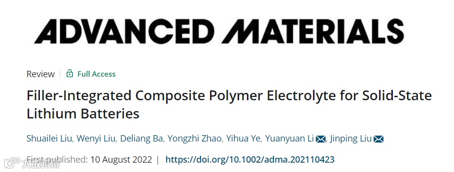基于此,来自武汉理工大学刘金平教授和华中科技大学李园园副教授团队,在国际权威期刊Advanced Materials上发表题为“Filler-Integrated Composite Polymer Electrolyte for Solid-State Lithium Batteries”的综述文章。