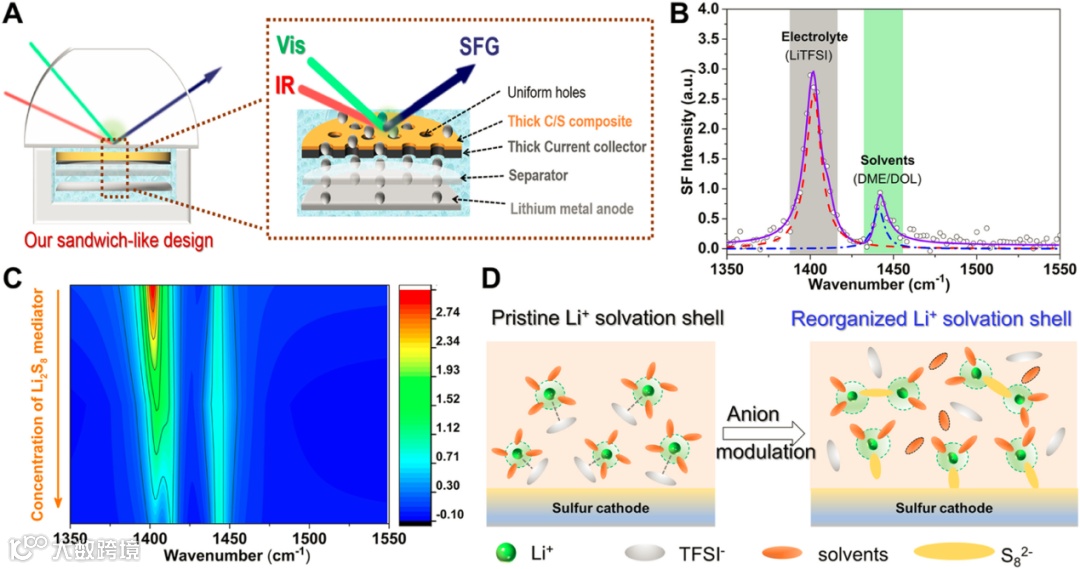 图1. 和频光谱(SFG)测试多硫化锂添加剂作用机理图以及对界面内亥姆霍兹层演变