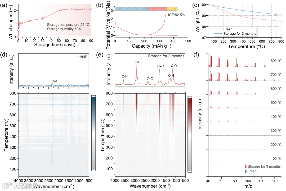要点二:存储阶段,长期空气暴露会导致硬炭表面官能团的逐渐演化进而增加了不可逆容量损失