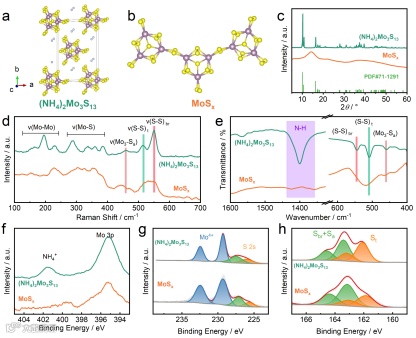 图2. (NH4)2Mo3S13和非晶MoSx的结构。