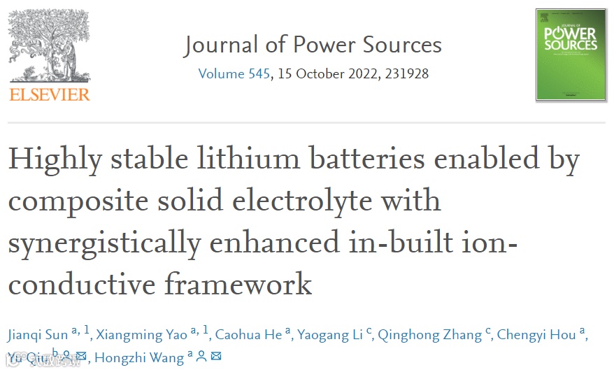 基于此,来自东华大学的王宏志教授与福建江夏学院的邱羽教授合作,在Journal of Power Sources上发表题为“Highly stable lithium batteries enabled by composite solid electrolyte with synergistically enhanced in-built ion-conductive framework”的研究文章。