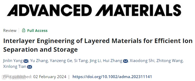 近日,海南大学田新龙教授团队在国际知名期刊Advanced Materials上发表题为“Interlayer Engineering of Layered Materials for Efficient Ion Separation and Storage”的综述文章。该综述文章首先系统性总结了层状材料的层间工程方法,随后结合具体研究工作,重点梳理和归纳了层间工程在离子分离与存储方面的应用,最后对层间工程的未来发展进行了展望。