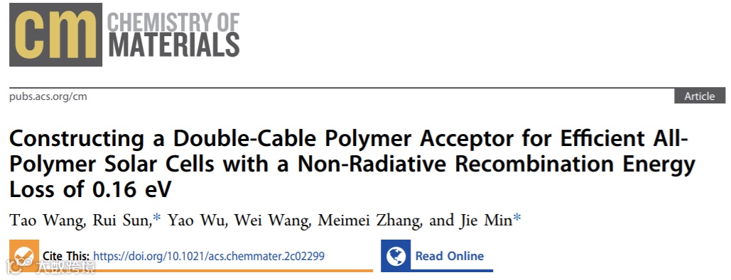 基于此,来自武汉大学高等研究院的闵杰课题组,在美国化学会(ACS)旗下材料化学期刊Chemistry of Materials上发表了题为“Constructing a Double-Cable Polymer Acceptor for Efficient All-Polymer Solar Cells with a Non-Radiative Recombination Energy Loss of 0.16 eV”的研究论文。