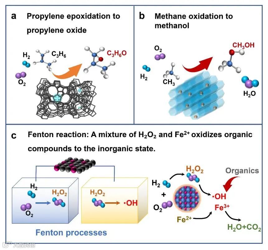 最后,本文还综述了关于H2O2的原位氧化反应,包括丙烯环氧化制环氧丙烷、Fenton反应和甲烷氧化制甲醇。通过开发和设计高效的多功能催化剂以及工艺流程和设备,探索以氢气,氧气和有机物为原料的原位氧化体系,无论是从化学品市场角度还是安全生产来看,都具有重要的研究意义。
