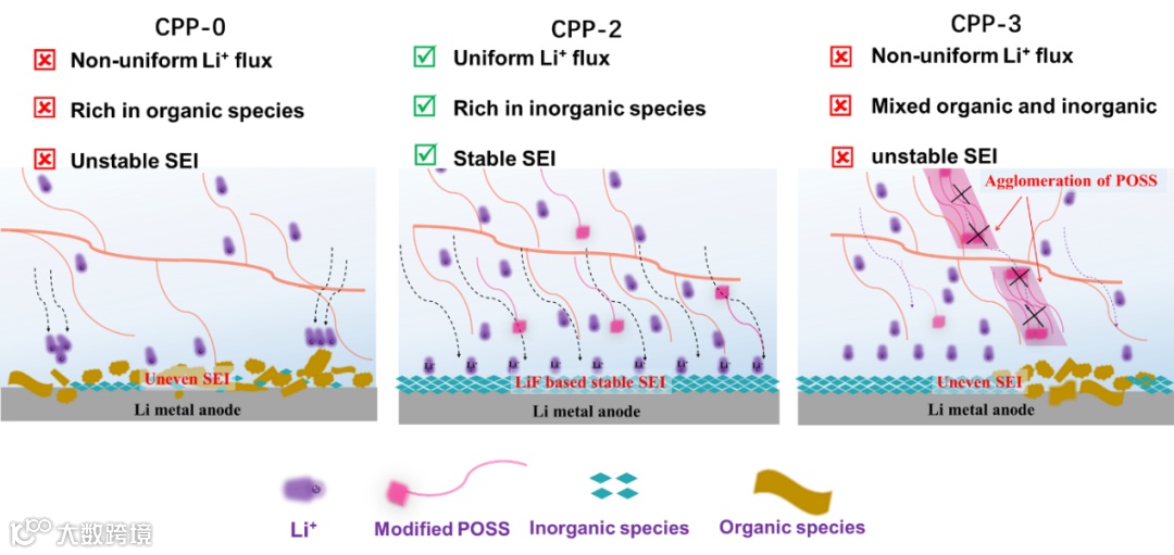 A composite gel polymer electrolyte by incorporating modified POSS endowing inorganic-rich SEI formation and stable cycle life for lithium metal batteries.