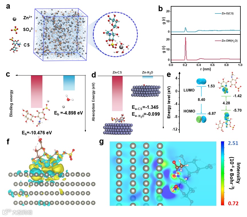 要点一:基于计算模拟确定了CS同Zn2+、锌金属界面和水之间的相互作用