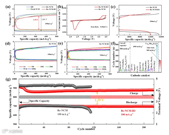 要点三:以Re-NCM-H3作为催化剂的Li-CO2电池性能