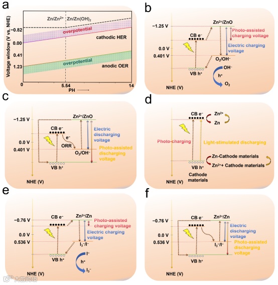 为了克服太阳能电池的间歇性,研究人员提出了一种新的策略,即将光响应电极集成到能量存储设备中,创造出了光激励电池系统。其中,光激励型锌基电池因其成本效益高、易于制造、安全环保等优点备受关注。但从光电极材料的设计到光激励型锌基电池的组装和测试的整个过程中一直存在着重大挑战。