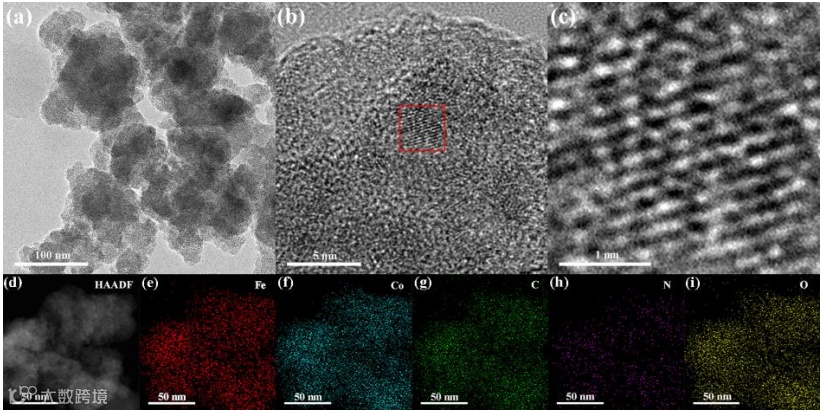 图2.FeCo3(DDA)2的TEM及mapping图像。