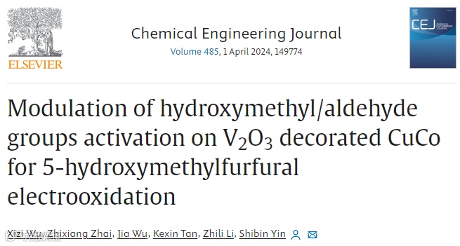 “Modulation of hydroxymethyl/aldehyde groups activation on V2O3decorated CuCo for 5-hydroxymethylfurfural electrooxidation”