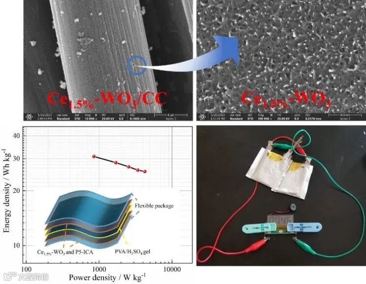 富氧空位柔性Ce掺杂WO3纳米线阵列应用于软封装非对称超级电容器