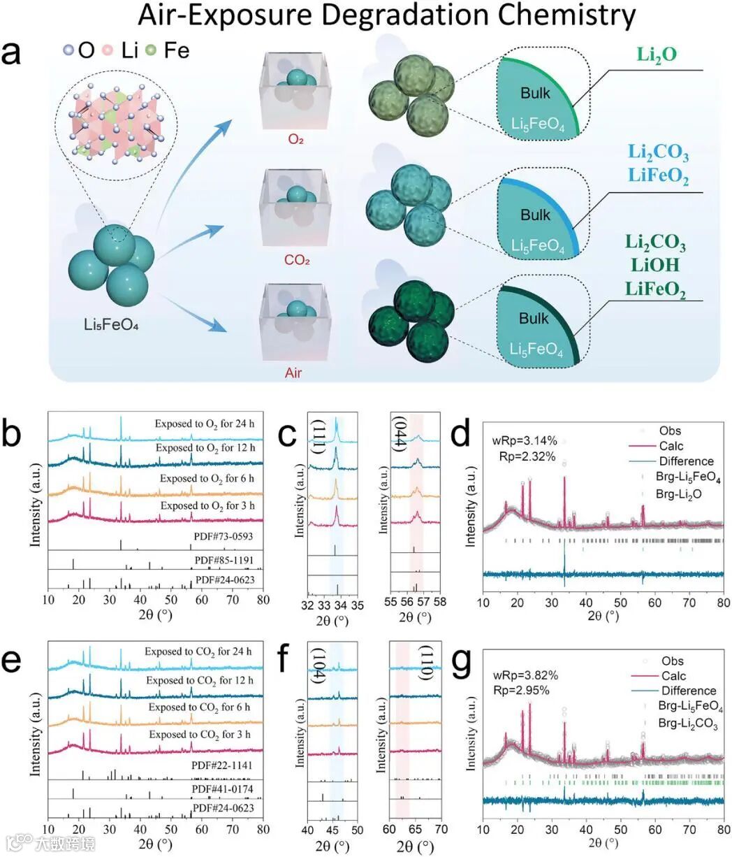 图1. Li5FeO4空气暴露降解示意图