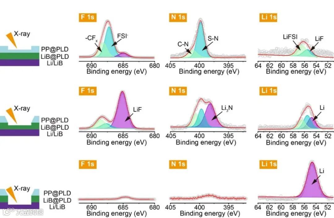 图3. 一体化锂负极F 1s、N 1s 和 Li 1s的XPS图谱。