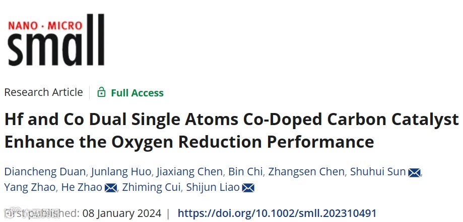 Hf and Co Dual Single Atoms Co-Doped Carbon CatalystEnhance the Oxygen Reduction Performance”