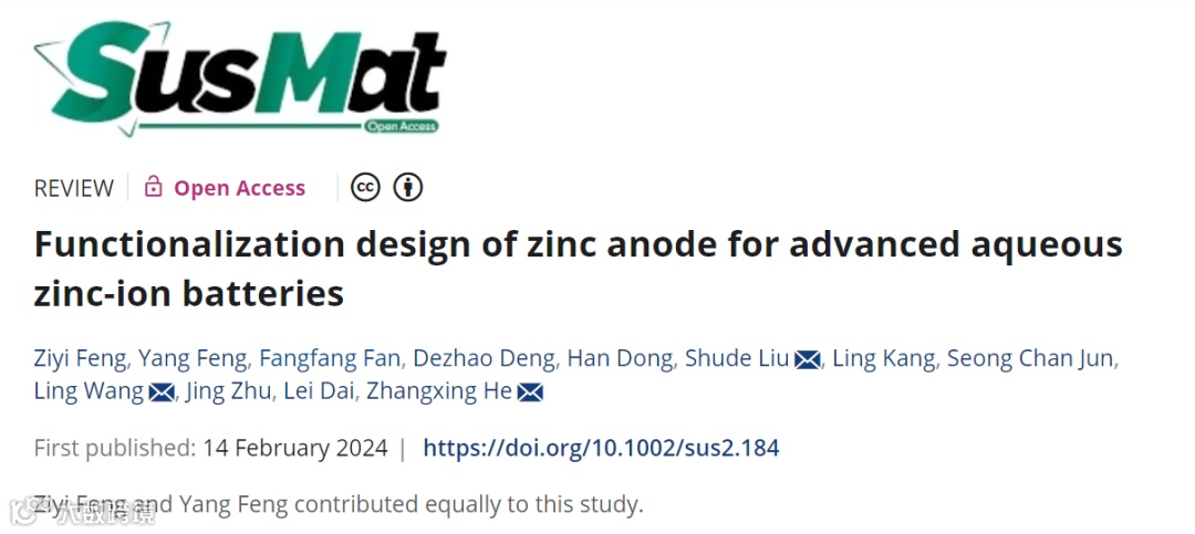 近日,华北理工大学的何章兴教授、王岭教授,东华大学刘书德研究员等在国际知名期刊SusMat上发表题为“Functionalization design of zinc anode for advanced aqueous zinc-ion batteries”的综述文章。该文章围绕功能化锌负极的构建,讨论了用作界面保护层的涂层材料、适合锌合金化的金属材料以及功能锌负极的结构优化材料。具体包括碳材料、金属材料、无机非金属材料、有机小分子材料、有机大分子材料、无机复合材料、有机复合材料、有机-无机复合材料。区别于以往的研究,文章整理了有机、无机和复合材料的共同特征,揭示了功能化锌负极的保护机制。最后,文章对AZIBs功能化负极的未来发展进行了总结与展望。