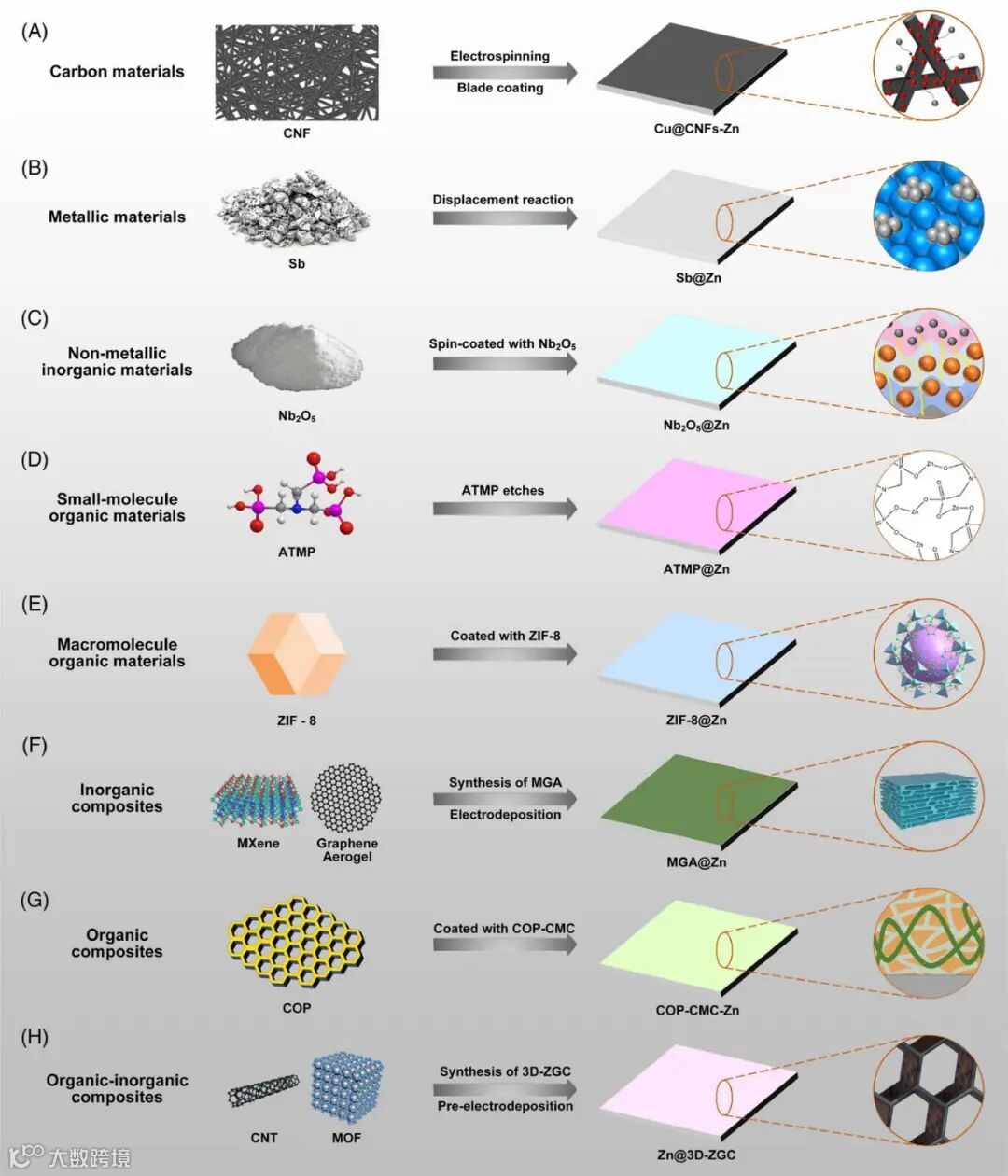 构建功能化锌负极为提高电池整体性能提供了解决方案,为集成到大规模储能系统铺平了道路,标志着广阔的增长潜力。根据功能化负极材料的不同类型,可将其分为无机、有机和复合三大类。