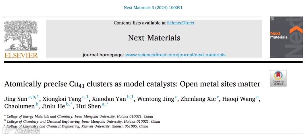 原子精确的Cu41团簇作为模型催化剂:暴露的金属位点很重要