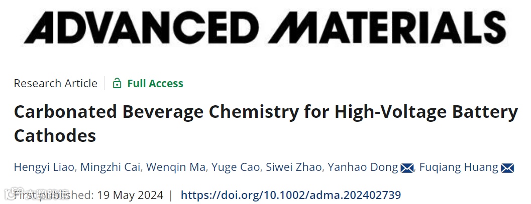 近日,上海交通大学材料学院讲席教授、未来材料创制中心主任黄富强与清华大学材料学院的董岩皓合作,在国际知名期刊Advanced Materials上发表题为“Carbonated Beverage Chemistry for High-Voltage Battery Cathodes”的研究论文,首次报道了一种基于碳酸饮料化学的过饱和CO2界面修饰策略,可从正极粗糙的界面产生低模量、超弹性的有效钝化层,实现了层状氧化物正极在超高截止电压(4.6V及4.8V)下的稳定。