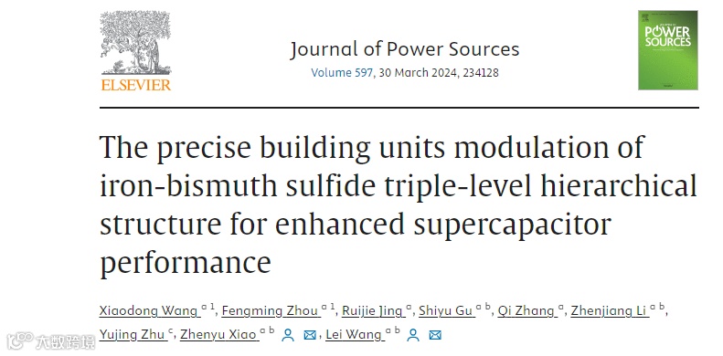 The precise building units modulation of iron-bismuth sulfide triple-level hierarchical structure for enhanced supercapacitor performance.