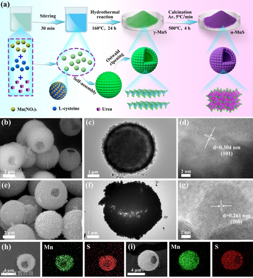 近年来,水系锌离子电池(AZIBs)因具有高安全性、低成本、环保、资源丰富且电化学特性优异等引起了极大的关注。硫化锰(MnS)作为一种新型的AZIBs锰基正极材料,具有较低的电负性、较高的电导率和较好的电化学活性等优点。然而,MnS的倍率性能和循环稳定性仍然需要进一步提升;同时,其储能机理也存在争议,需要进一步澄清。因此,提升MnS材料的电化学性能并探索其在AZIBs中的储能机理对于其未来应用和发展具有重要的意义。