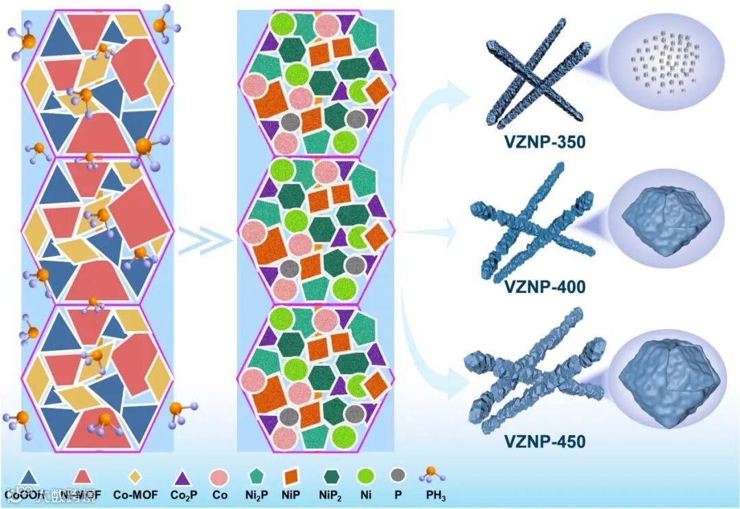 图1. 通过在氮气保护气氛下通过多价镍金属掺杂来增加磷化物的种类可控调整材料形态的示意图。