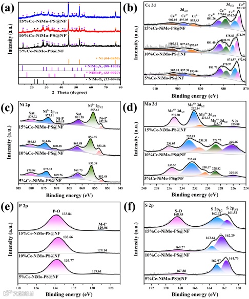 亮点一:成功合成了不同Ce掺杂比的NiMo基磷/硫化异质结构。