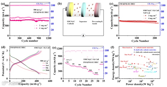 图2:基于SMCS@C正极的K-S电池的电化学性能表征。
