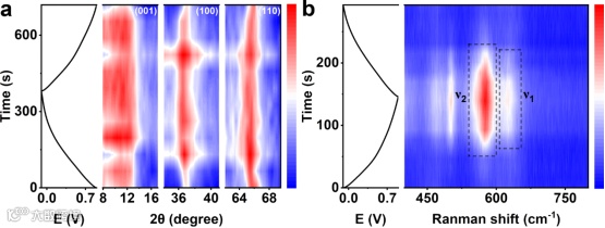 采用几何相分析(GPA)研究cub- MnO2和com-MnO2的应变分布。cub - MnO2具有大量的应变聚集区域并伴随可以忽略的应变强度。com-MnO2的应变强度远高于cub - MnO2,表明Mg2+限域导致com-MnO2晶格畸变严重。此外,Mg2+限域后,cub - MnO2中的规则晶格条纹在com-MnO2中扭曲,进一步验证了com-MnO2的扭曲晶体结构。