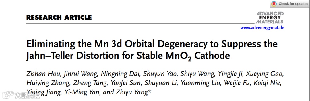 消除Mn 3d轨道简并性抑制Jahn-Teller畸变实现稳定MnO2阴极