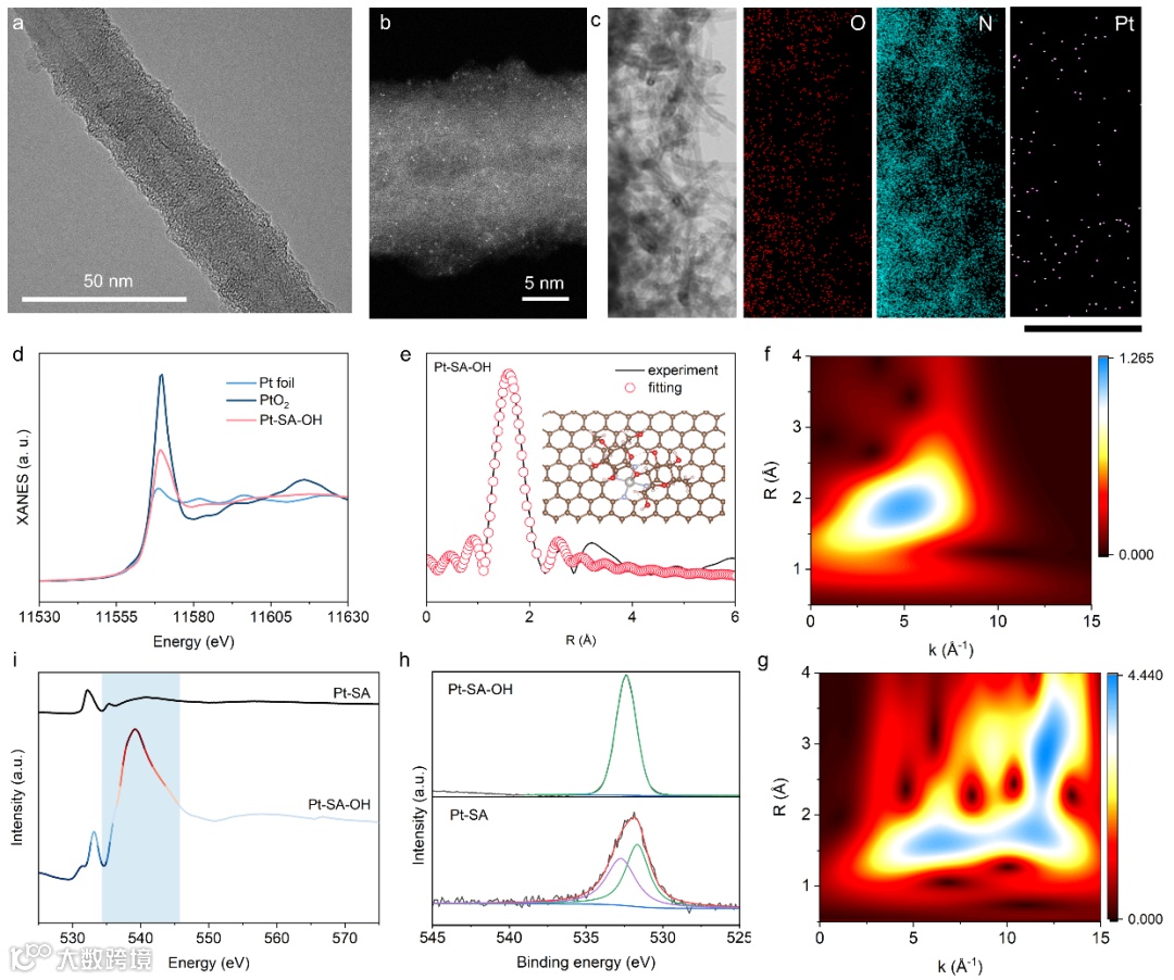 图2. Pt-SA-OH催化位点的几何以及电子结构表征。