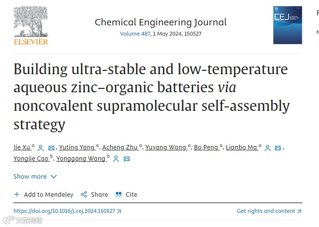 通过非共价超分子自组装策略构建超稳定和低温水系锌有机电池