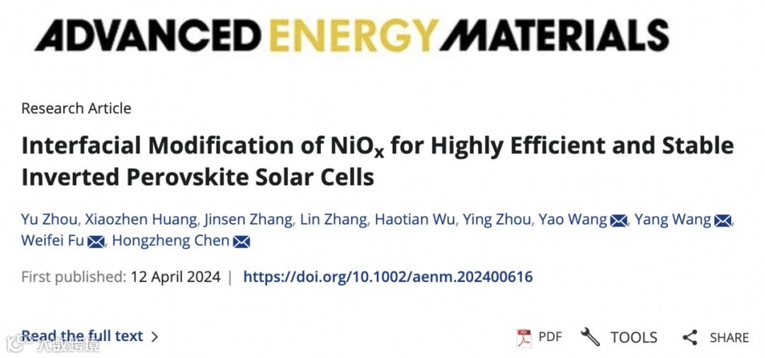 NiOx的界面修饰用于高效稳定的反式钙钛矿太阳电池