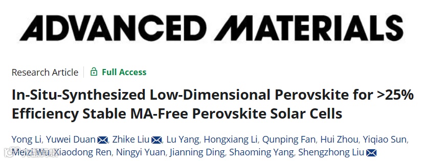 原位合成低维钙钛矿用于效率>25%的稳定无甲胺钙钛矿太阳电池