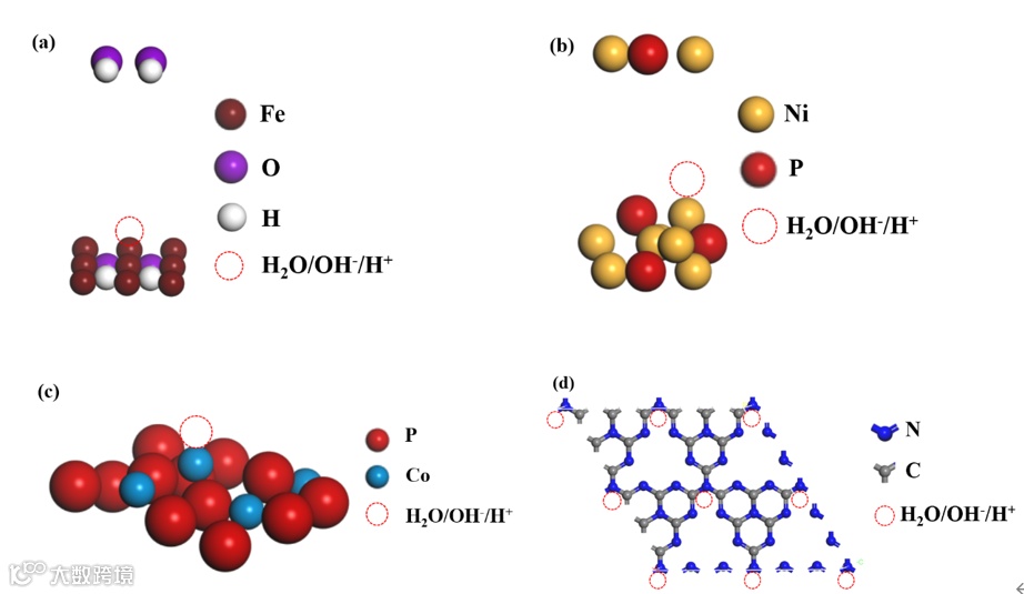 常见的电催化材料通过调控硫、氧空位浓度、原子掺杂等方式降低电催化反应能垒。最近的研究表明,构建多界面材料可以显著降低能垒。本工作构建了CoP3-FeOOH-Ni2P-C3N4 (CoFeNiC) 多界面材料,DFT计算结果表明,FeOOH、Ni2P 与C3N4间有较大功函差值,有效促进了电子从FeOOH、Ni2P转移至C3N4。DFT吸附能结果表明,这四组分均对H2O、OH-、H+具有理想的吸附和解离能,其中,CoP3具有很强的吸附能力。这四组分的协同作用显著提升了CoFeNiC的析氢能力,仅需17 mV电流密度即可达到10 mA cm-2,且其法拉第效率高达94.8%。