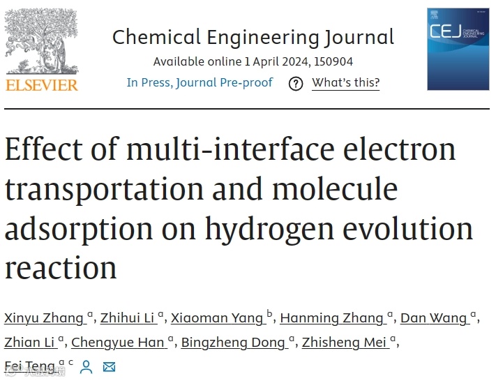 近日,来自南京信息工程大学的滕飞教授,在国际知名期刊Chemical Engineering Journal上发表题为“Effect of multi-interface electron transportation and molecule adsorption on hydrogen evolution reaction”的观点文章。该观点文章揭示了多界面电子输运和分子吸附对析氢反应的影响规律,同时构建了不同阴阳极材料的不对称电解槽,为未来设计高效电催化剂和节能电解槽提供基础。