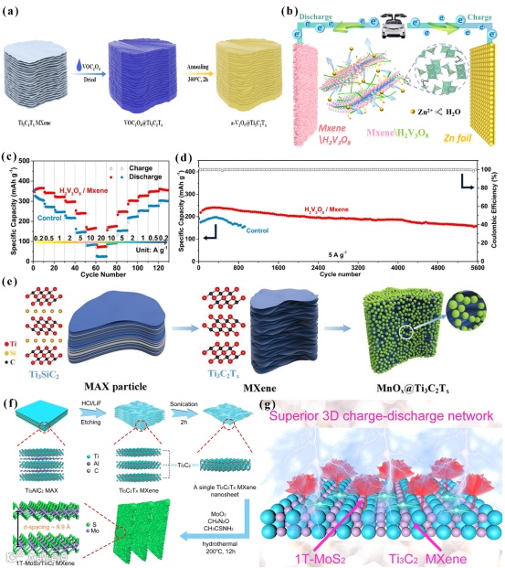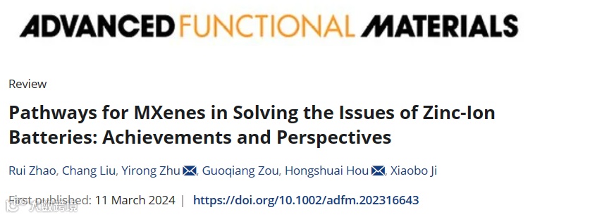 鉴于此,湖南工业大学朱裔荣教授&中南大学侯红帅教授等人从应对ZIBs挑战的角度出发,系统地总结了ZIBs中MXenes应用的最新进展,并按照不同的改性策略对其进行了分类讨论,包括阴极的活化和复合策略,阳极的界面工程、结构优化和无锌阳极策略,电解质的固态化策略,以及隔膜的功能化策略。此外,依据不同的改性策略,对ZIBs中MXenes的功能和相关机理进行了分析和总结,并进一步展望了其在该领域的多元化应用。本综述旨在突出MXenes在ZIBs中的优势和发展潜力,促进MXenes在该领域更为广泛的应用。