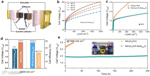 图6. UP-RuNiSAs/C的电解槽性能测试。