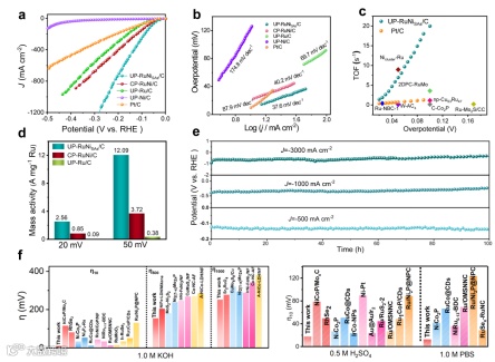 图5. UP-RuNiSAs/C的电化学性能测试。