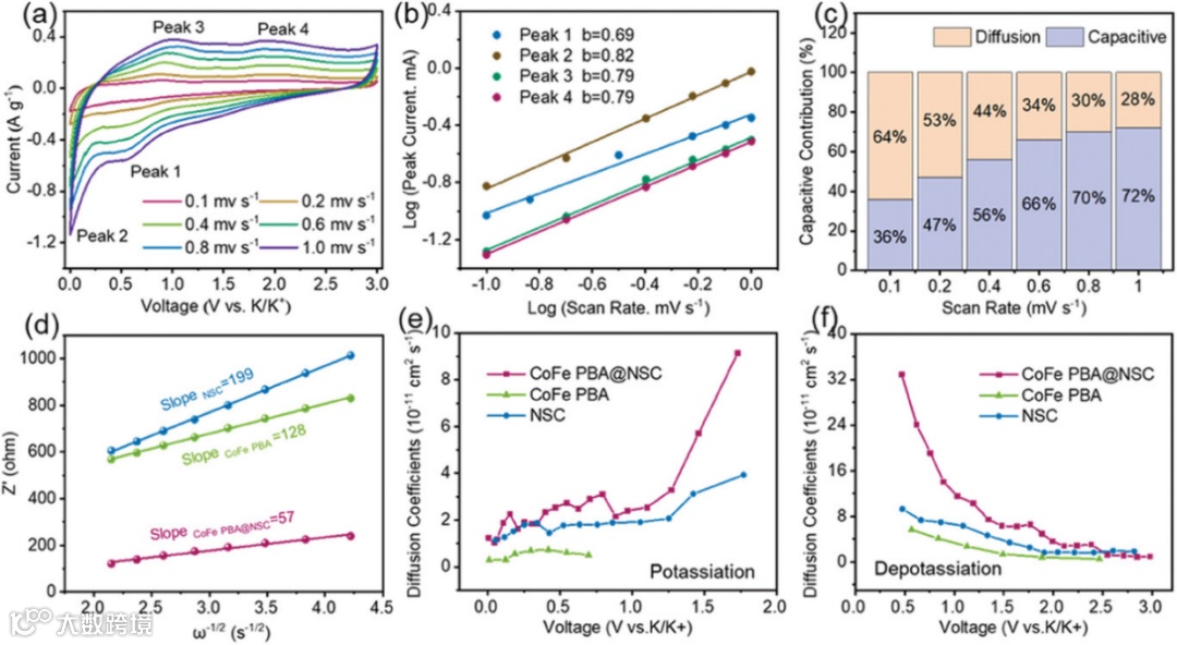 图4. CoFe PBA@NSC的电化学动力学分析。
