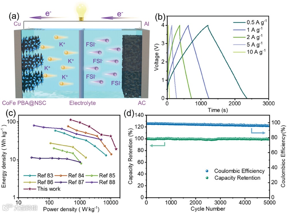 图6. CoFe PBA@NSC在钾离子电容器中的性能测试。