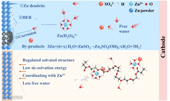 PEGDA改性界面抑制了锌离子的局部聚集生长,限制了枝晶的失控生长,同时减少了腐蚀副产物在界面的堆积。